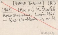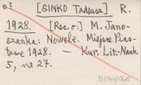 R. [SINKO Tadeusz] 1928 [Rec. o:] M. Janoszanka: Nowele. Miejsce Piastowe 1928.