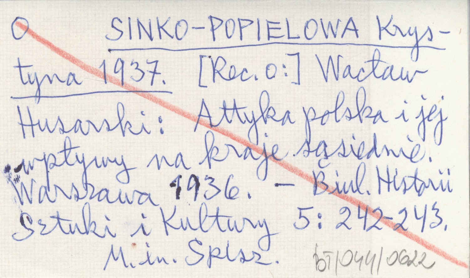 SINKO-POPIELOWA Krystyna 1937 [Rec. o:] Wacław Husarski: Attyka polska i jej wpływy na kraje sąsiednie. Warszawa 1936.