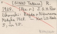 R. [SINKO Tadeusz] 1928 [Rec. o:] J. G. H. Pawlikowski: Bajda o Niemrawcu. Medyka 1928.