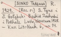 R. [SINKO Tadeusz] 1929 [Rec. o:] S. Tync i J. Gołąbek: Beskid Zachodni i Podhale. Lwów, Warszawa 1928.