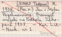 R. [SINKO Tadeusz] 1938 [Rec. o:] Jan i Stefan Reychmanowie: Przemysł wiejski na Podhalu. Zakopane 1937.
