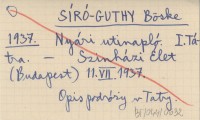 SÍRÓ-GUTHY Böske 1937 Nyári utinapló. I. Tátra.