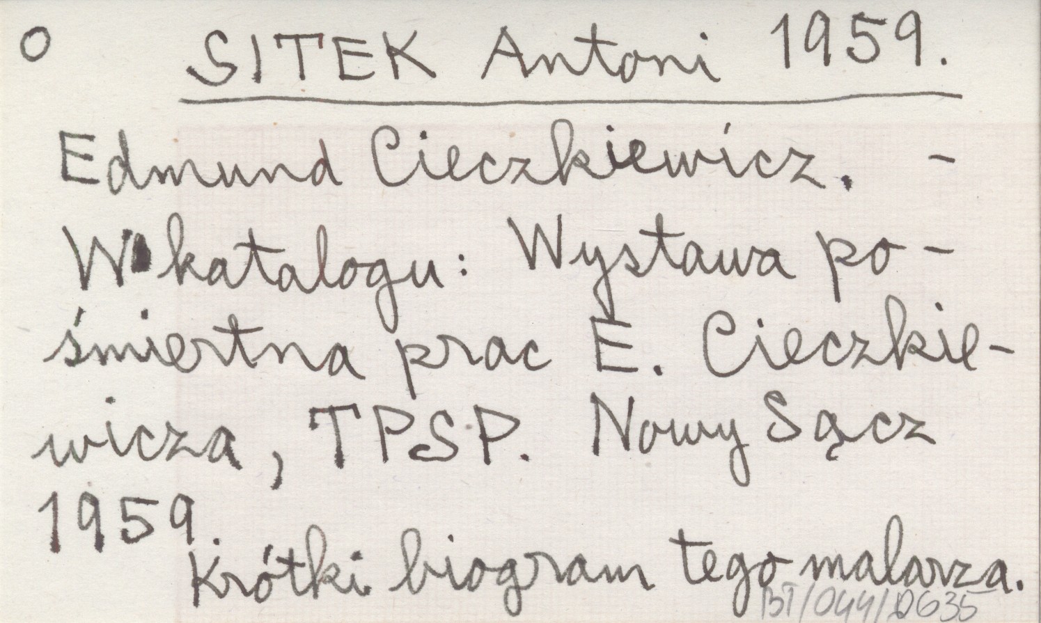 Wystawa pośmiertna prac E. Cieczkiewicza. TPSP, Nowy Sącz , Krótki biogram tego malarza.