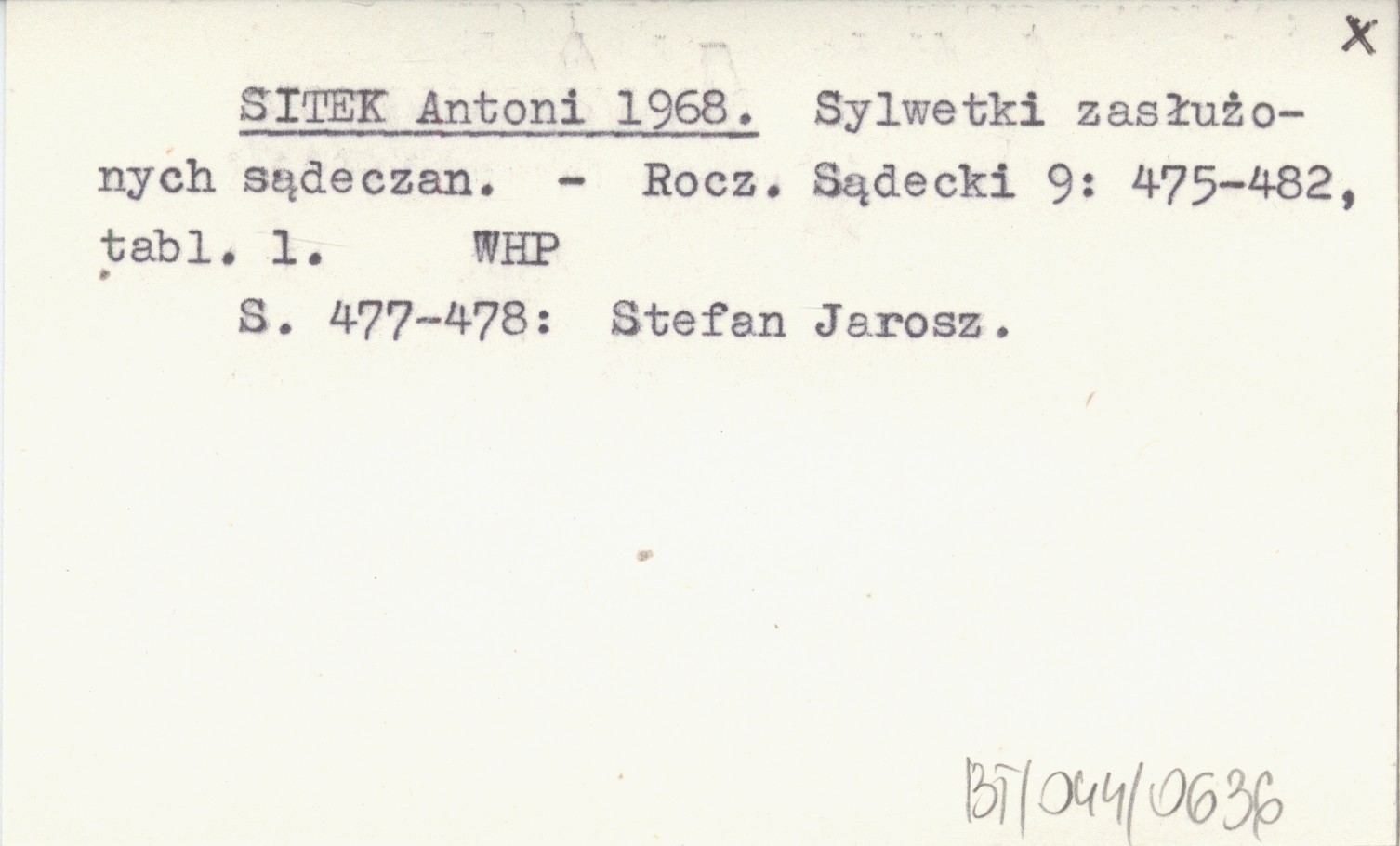 Rocznik Sądecki, 9: 475-482, 1 k. S. 477-478: Stefan Jarosz.