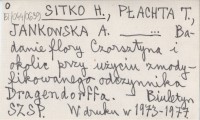 SITKO H. PŁACHTA, T. ; JANKOWSKA, A. ; Badanie flory Czorsztyna i okolic przy użyciu zmodyfikowanego odczynnika Dragendorffa.