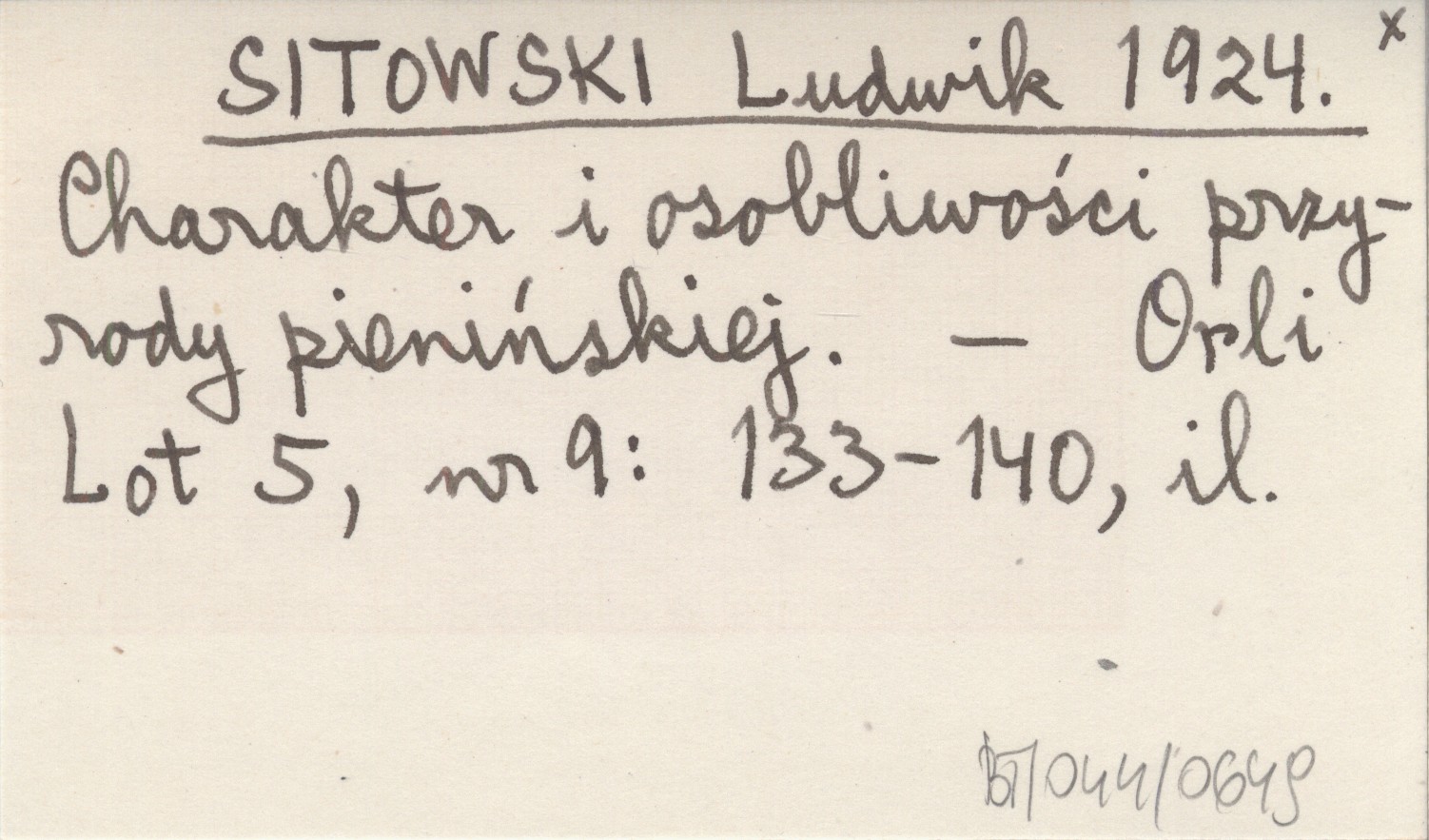 SITOWSKI Ludwik 1924 Charakter i osobliwości przyrody pienińskiej.