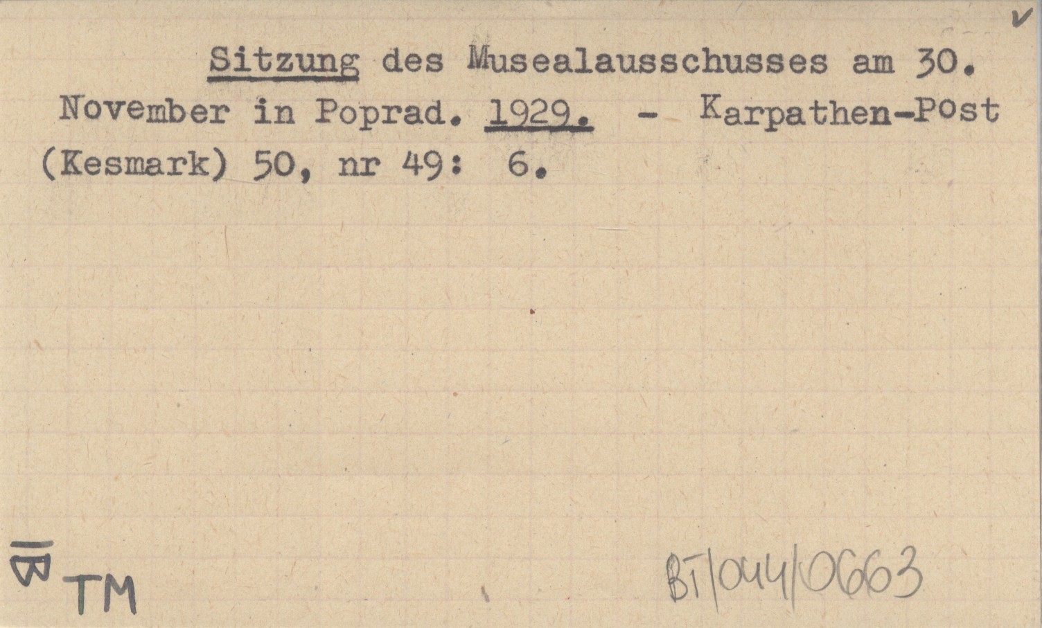Sitzung des Musealausschusses am 30. November in Poprad. 1929