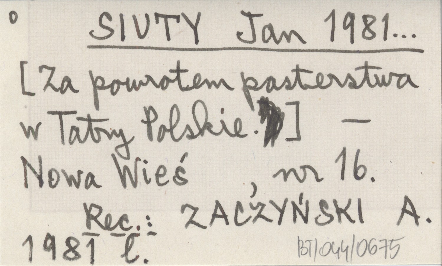 SIUTY Jan 1981... [Za powrotem pasterstwa w Tatry Polskie.]