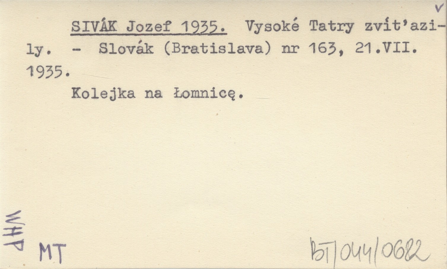 Slovák (Bratislava) , Nr 163 (21 VII 1935). Kolejka na Łomnicę.