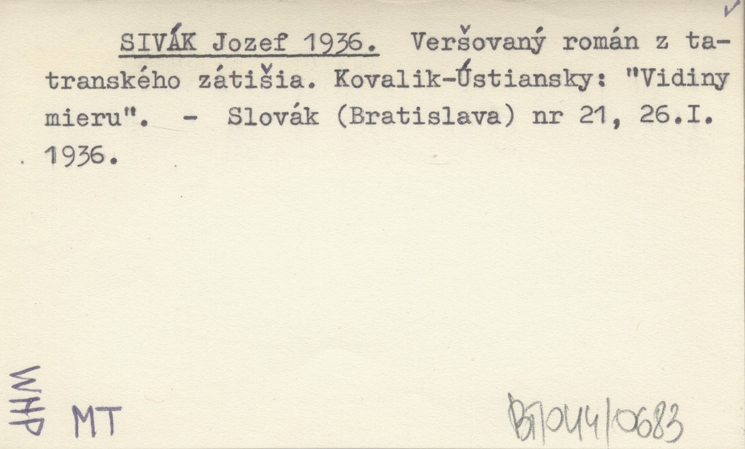 SIVÁK Jozef 1936 Veršovaný román z tatranského zátišia. Kovalik-Ústiansky: "Vidiny mieru".