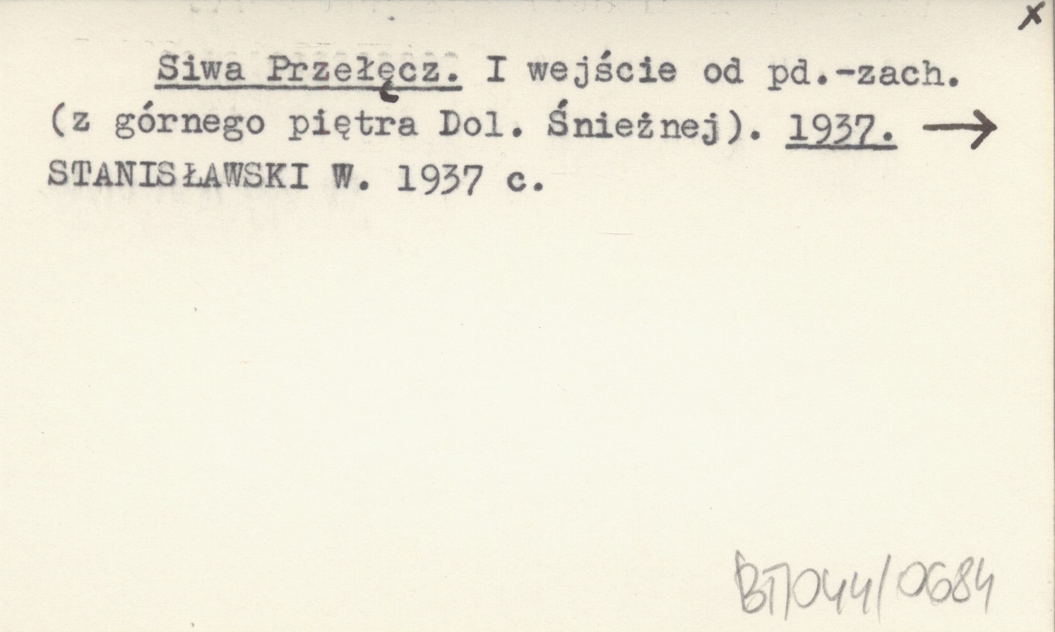 Siwa Przełęcz. I wejście od pd.-zach. (z górnego piętra Dol. Śnieżnej). 1937