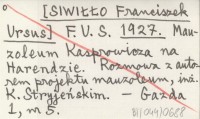 F. U. S. [SIWIŁŁO Franciszek Ursus] 1927 Mauzoleum Kasprowicza na Harendzie. Rozmowa z autorem projektu mauzoleum, inż. K. Stryjeńskim.