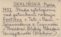 SKALIŃSKA Maria 1951 Studia cytologiczne nad gatunkami rodzaju Gentiana z Tatr i Pienin.