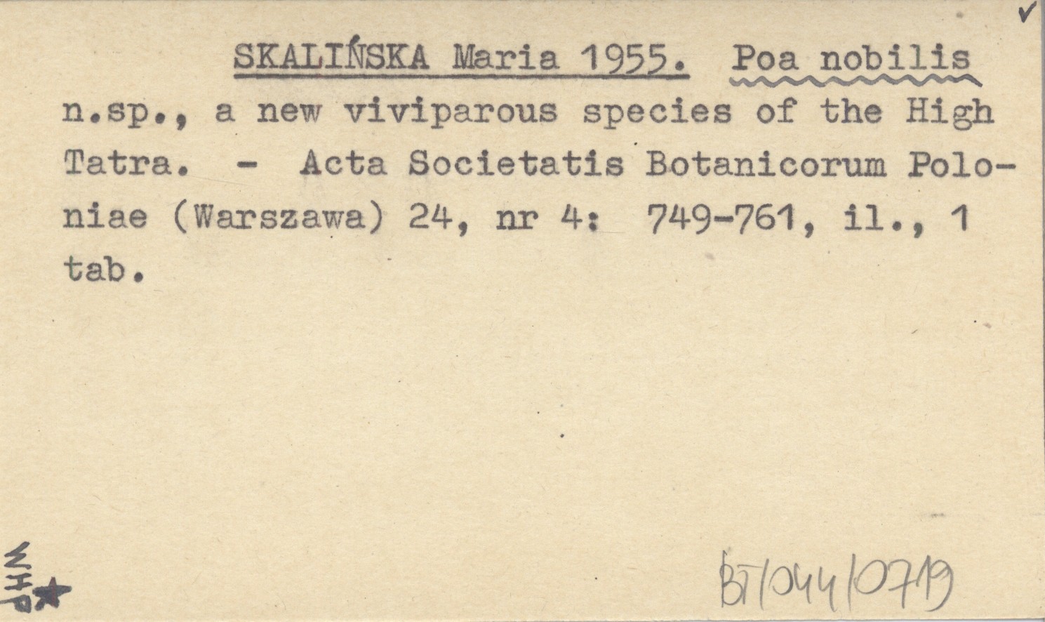 SKALIŃSKA Maria 1955 Poa nobilis n.sp., a new viviparous species of the High Tatra.