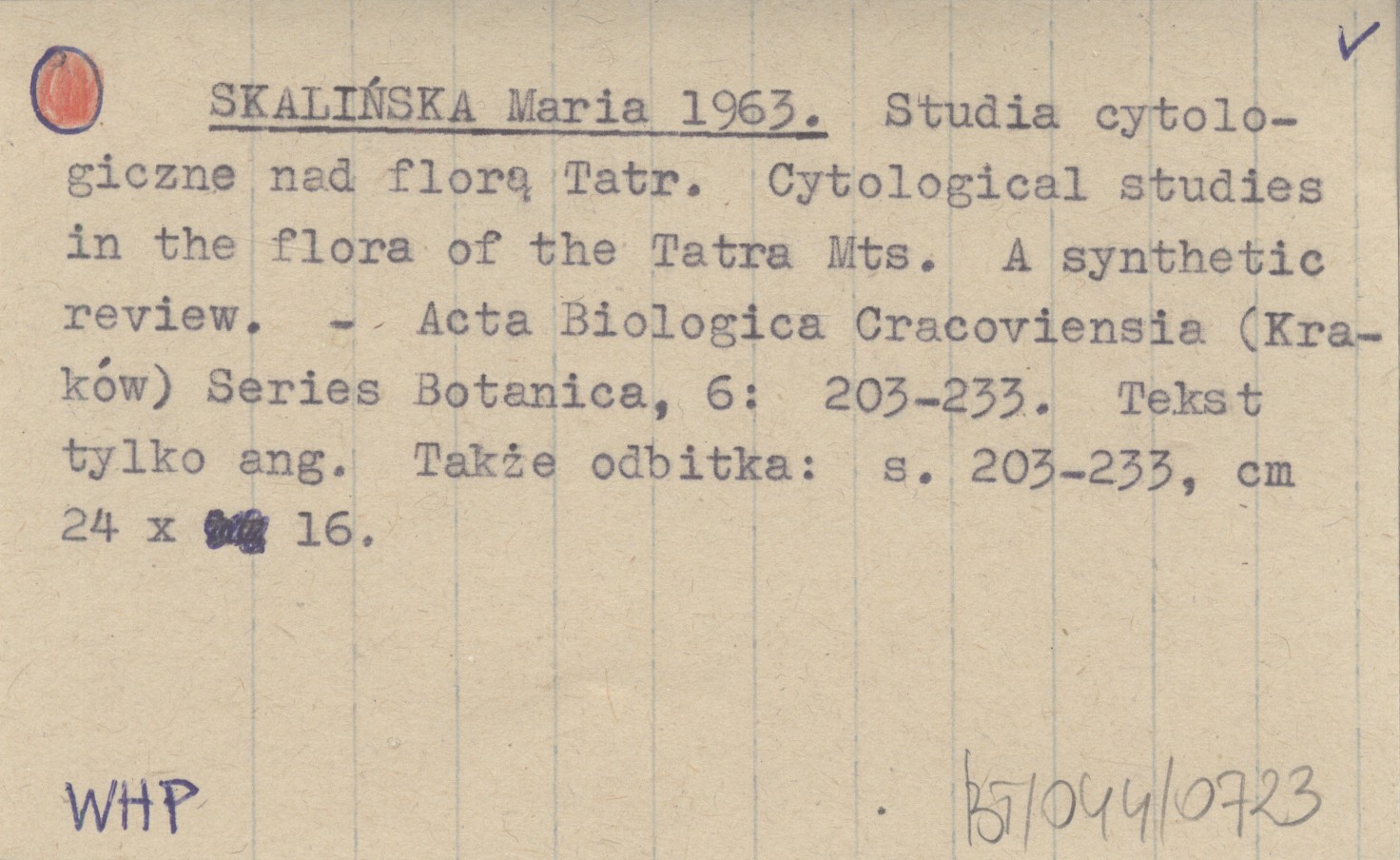 SKALIŃSKA Maria 1963 Studia cytologiczne nad florą Tatr. Cytological studies in the flora of the Tatra Mts. A synthetic review.