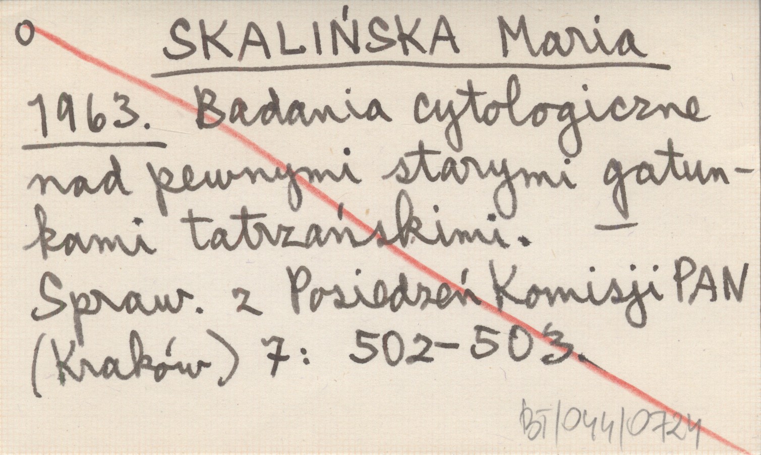 SKALIŃSKA Maria 1963 Badania cytologiczne nad pewnymi starymi gatunkami tatrzańskimi.