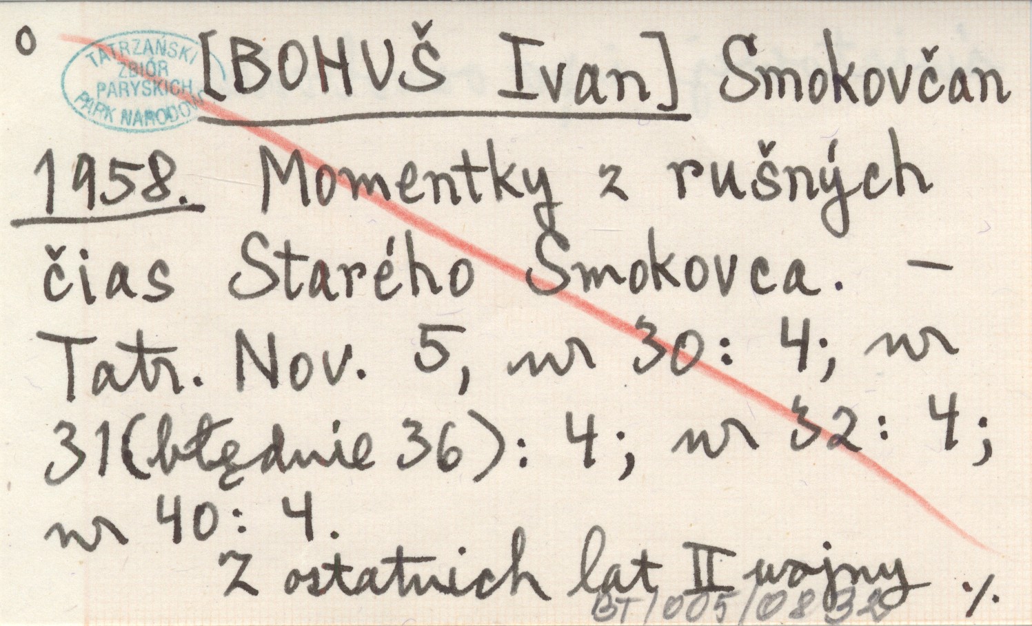 Tatranské Noviny, 5, nr 30: 4 ; nr 31 (błędnie 36): 4 ; nr 32: 4 ; nr 40: 4. Z ostatnich lat II wojny światowej i po oswobodzeniu.