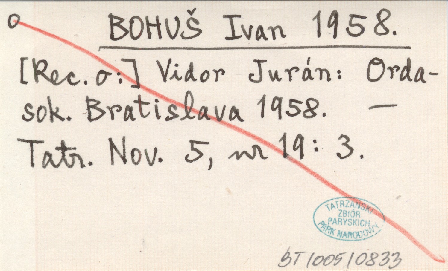 BOHUŠ Ivan 1958 Vidor Jurán: Ordasok. Bratislava 1958.