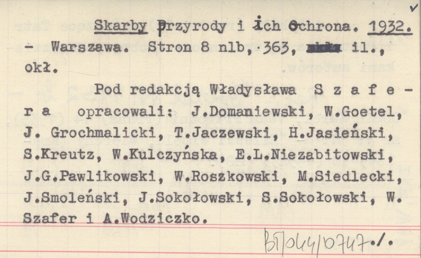 RED: SZAFER, Władysław. ; Skarby przyrody i ich ochrona. 1932