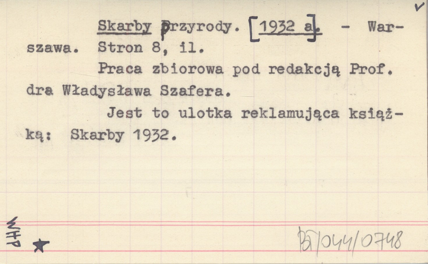 Warszawa , 8 s., il. Jest to ulotka reklamująca książką: Skarby 1932.