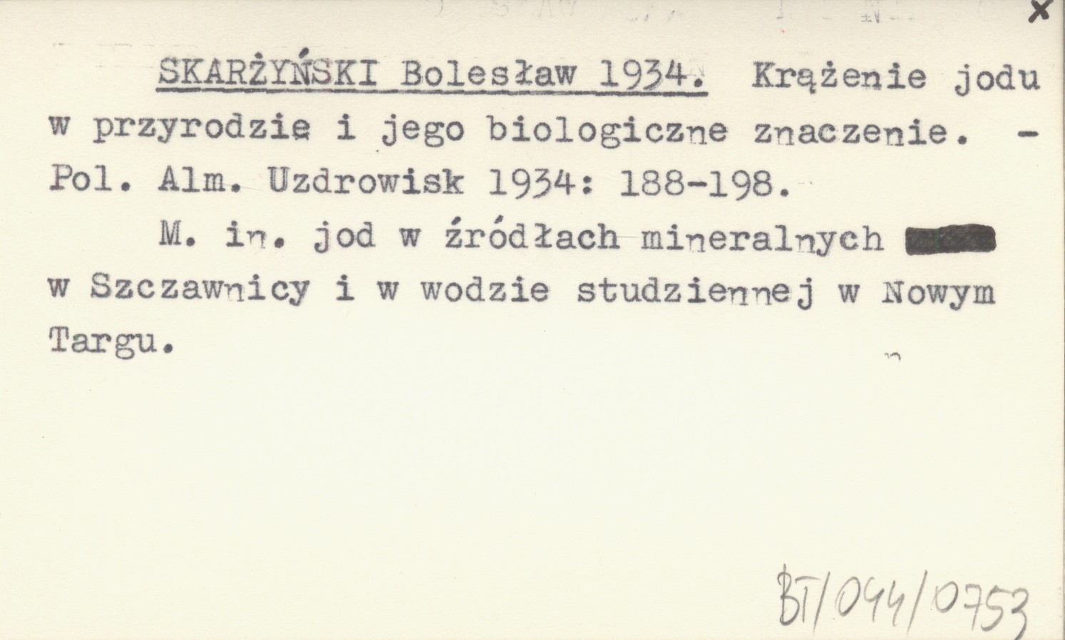 SKARŻYŃSKI Bolesław 1934 Krążenie jodu w przyrodzie i jego biologiczne znaczenie.