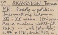 SKARŻYŃSKI Tomasz 1961 Stodoły w polskim budownictwie ludowym XIX i XX wieku. (Etnograficzna analiza niektórych cech).