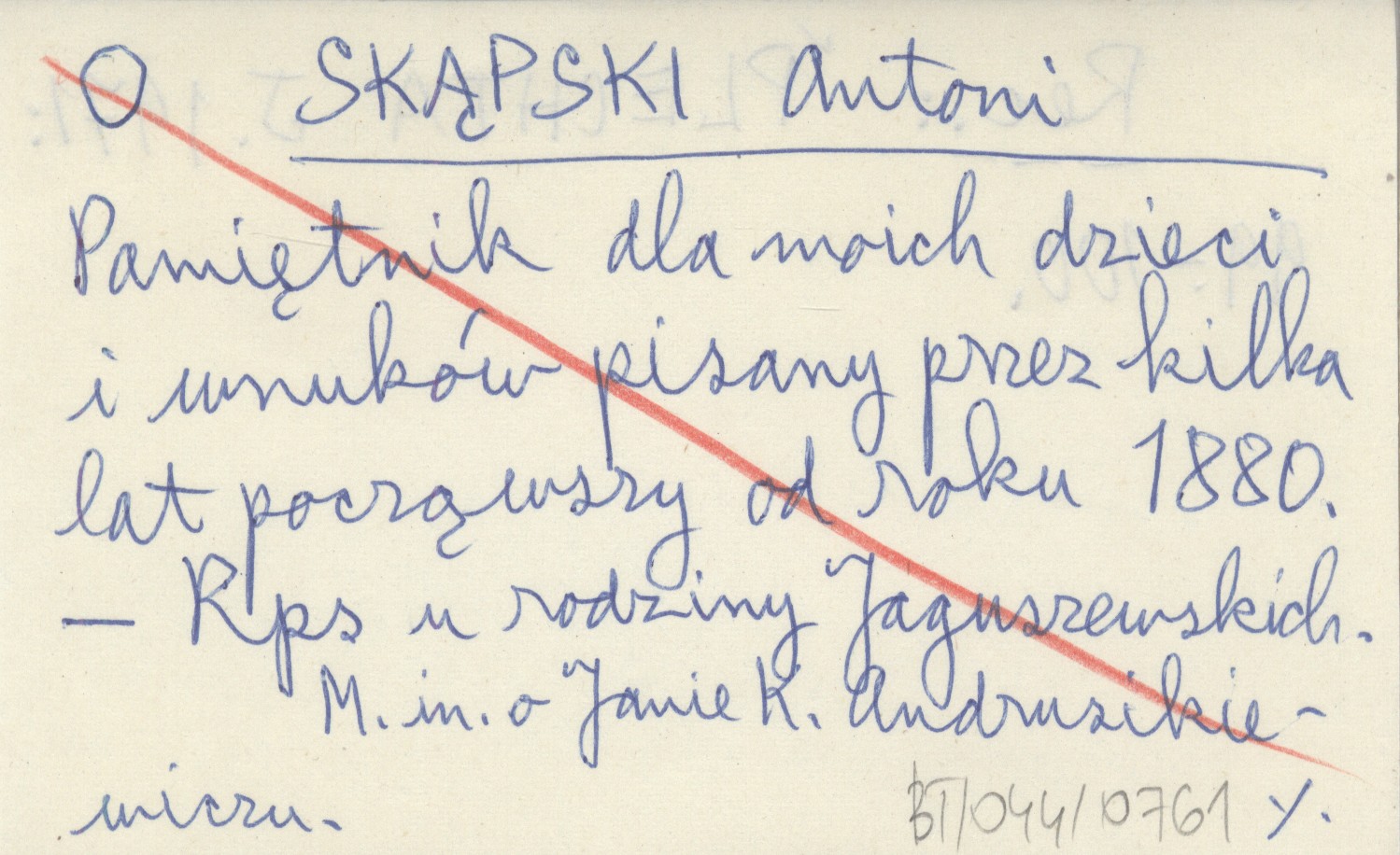 SKĄPSKI Antoni Pamiętnik dla moich dzieci i wnuków pisany przez kilka lat począwszy od roku 1880.