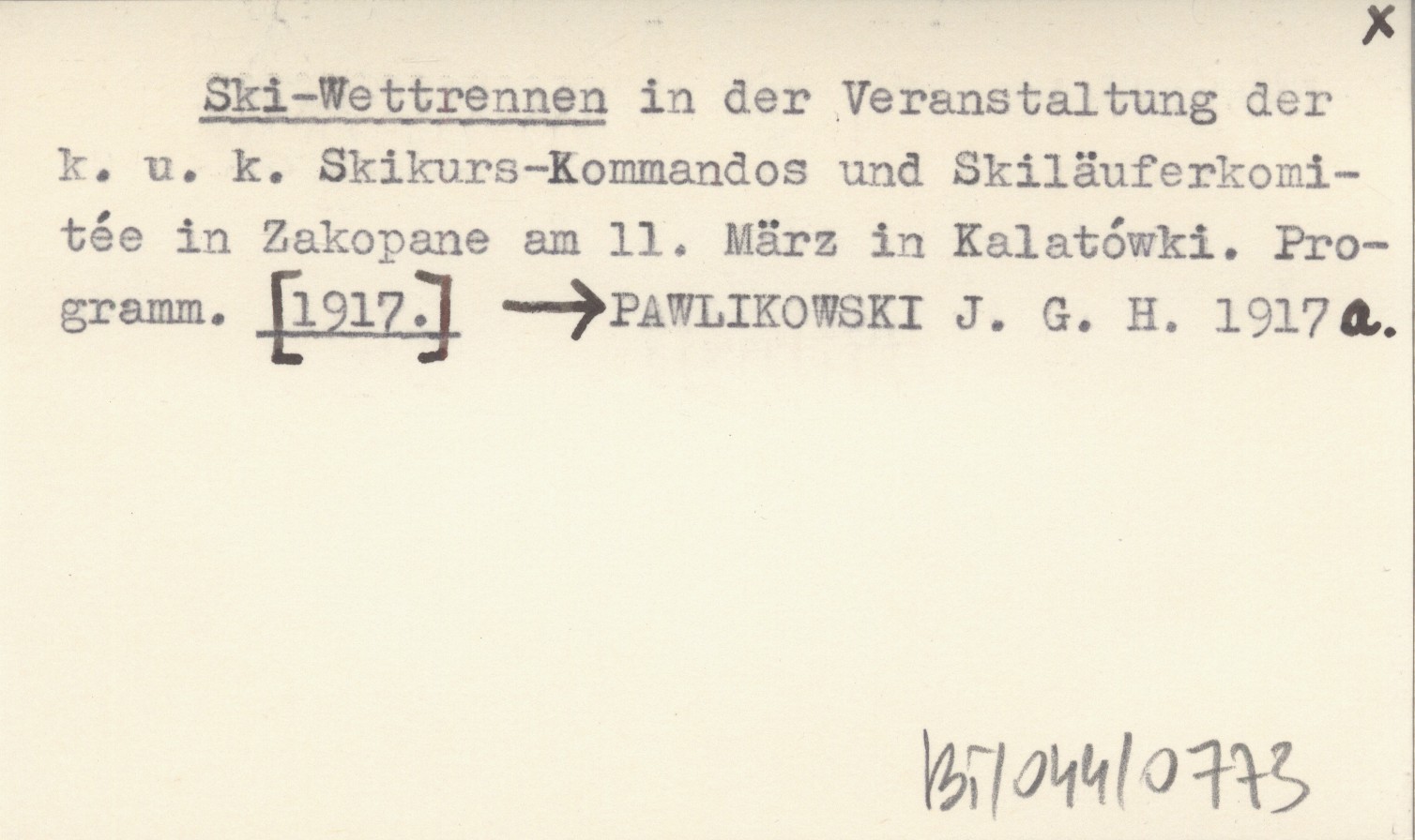 Ski-Wettrennen in der Veranstaltung der k.u.k. Skikurs-Kommandos und Skiläuferkomitée in Zakopane am 11. März in Kalatówki. Programm. [1917]