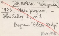 [SKIBIŃSKI Maksymilian] 1923 Nasz program.
