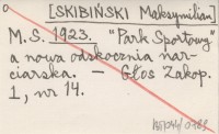 M. S. [SKIBIŃSKI Maksymilian] 1923 "Park Sportowy" a nowa odskocznia narciarska.