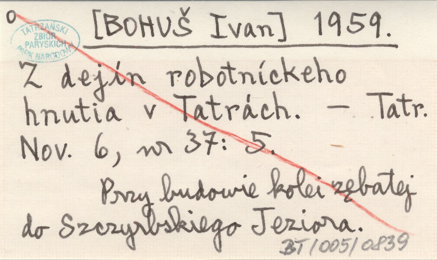 [BOHUŠ Ivan] 1959 Z dejín robotníckeho hnutia v Tatrách.