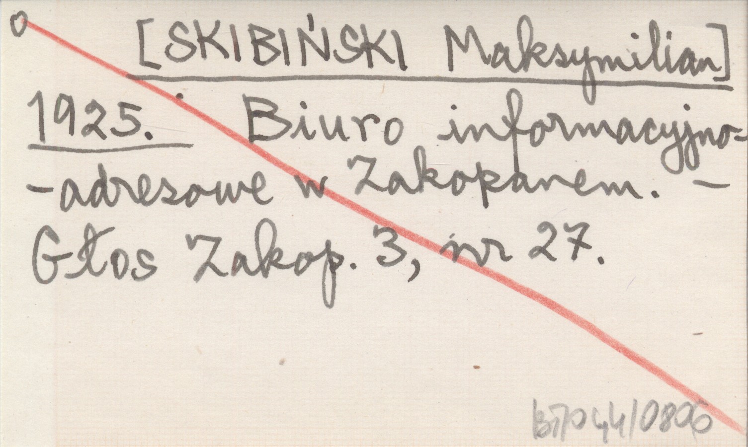 [SKIBIŃSKI Maksymilian] 1925 Biuro informacyjno-adresowe w Zakopanem.