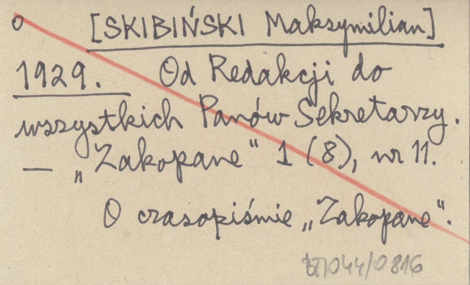 [SKIBIŃSKI Maksymilian] 1929 Od Redakcji do wszystkich Panów Sekretarzy.