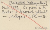 M. S. [SKIBIŃSKI Maksymilian] 1929 Co pisze p. E. Bieder o lekarzach polskich?