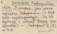 SKIBIŃSKI Maksymilian 1929 O szkodach, jakie prasa wyrządza Zakopanemu i o środkach zapobiegawczych. (Na tle dyskusji i uchwał Gremj. pensjonatów).