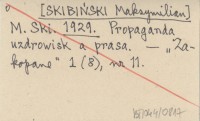 M. Ski. [SKIBIŃSKI Maksymilian] 1929 Propaganda uzdrowisk a prasa.