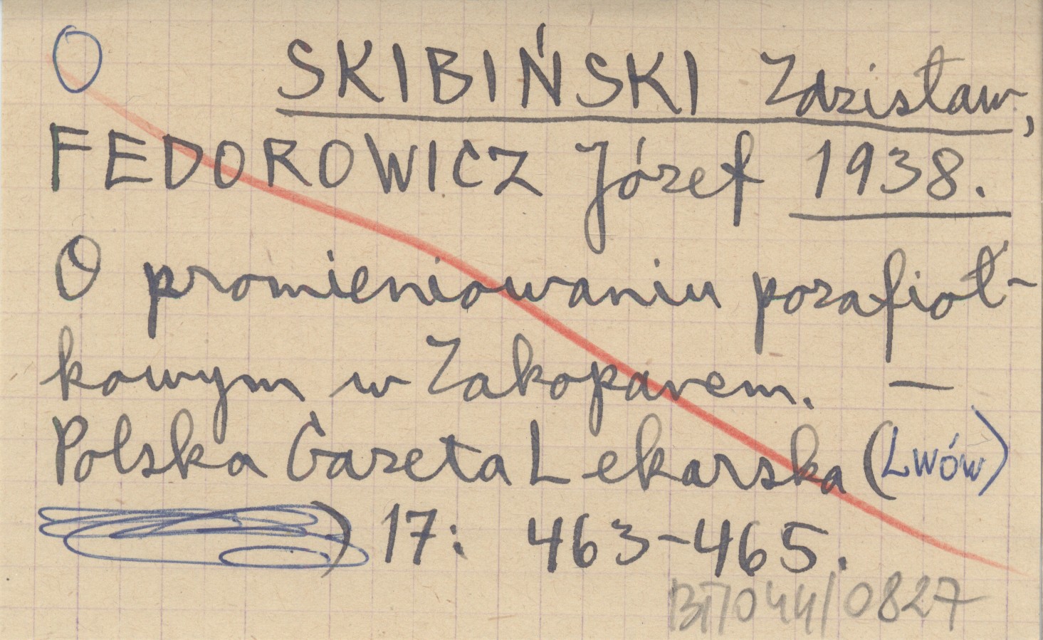 SKIBIŃSKI Zdzisław FEDOROWICZ, Józef. ; 1938 O promieniowaniu pozafiołkowym w Zakopanem.