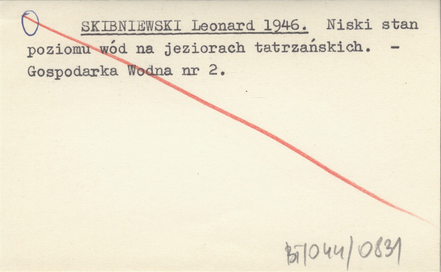 SKIBNIEWSKI Leonard 1946 Niski stan poziomu wód na jeziorach tatrzańskich.