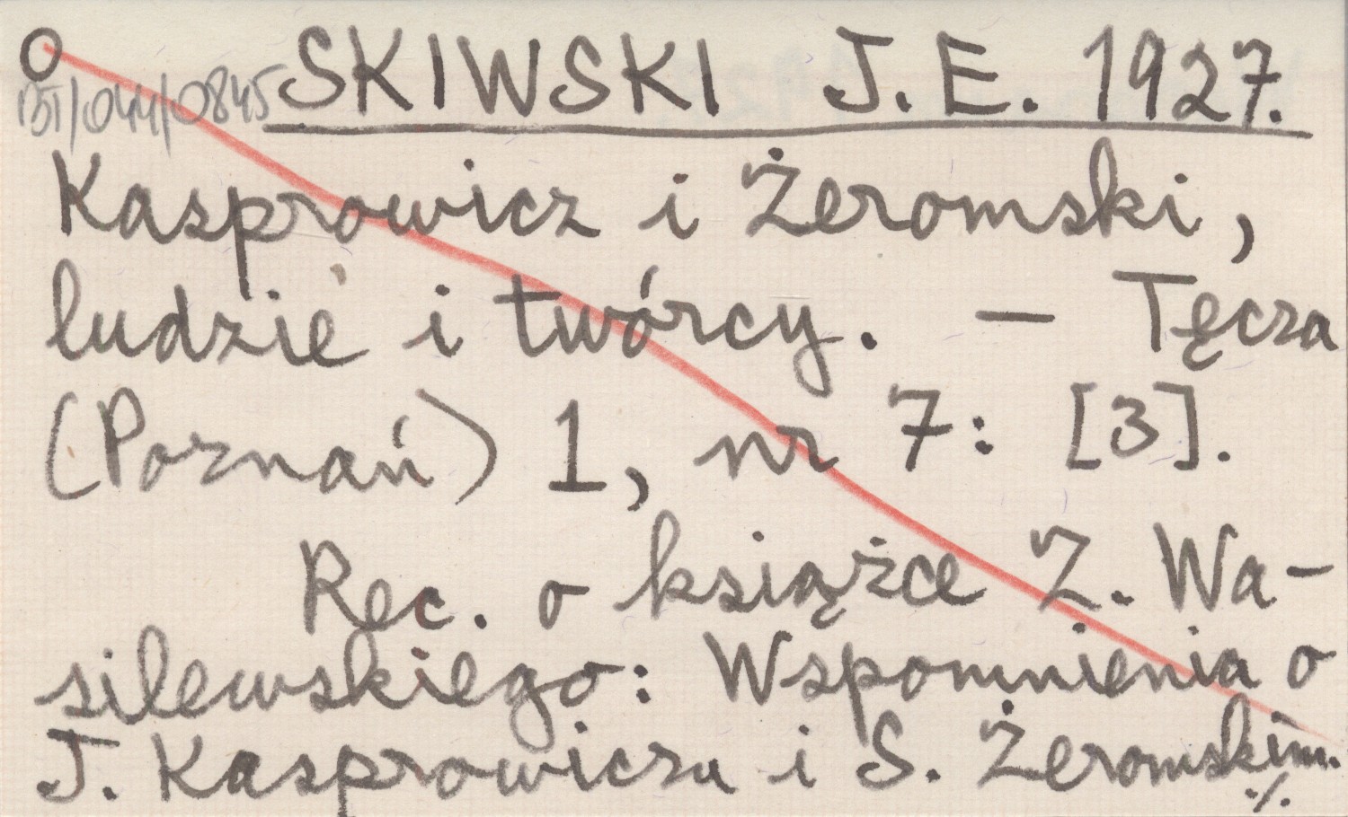 Tęcza (Poznań) , 1, nr 7: [3]. Recenzja o książce Z. Wasilewskiego: Wspomnienia o J. Kasprowiczu i S. Żeromskim. Warszawa 1927.