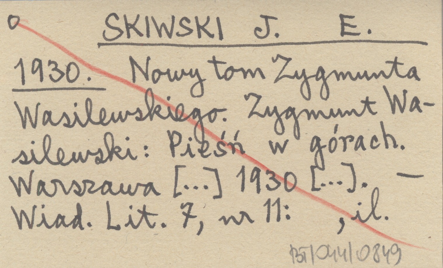 SKIWSKI J. E. 1930 Nowy tom Zygmunta Wasilewskiego. Zygmunt Wasilewski: Pieśń w górach. Warszawa [...] 1930 [...].