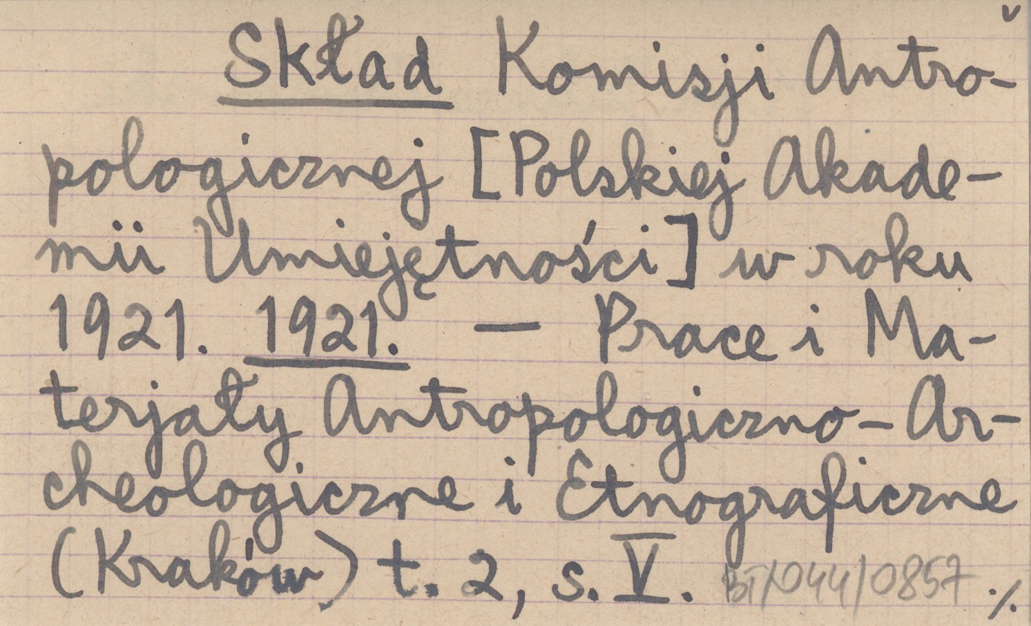 Skład Komisji Antropologicznej [Polskiej Akademii Umiejętności] w roku 1921. 1921