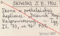 SKIWSKI J. E. 1932 Ikona w podhalańskiej kapliczce. "Dziennik" Marji Kasprowiczowej.