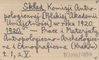 Skład Komisji Antropologicznej [Polskiej Akademii Umiejętności] w roku 1920. 1920