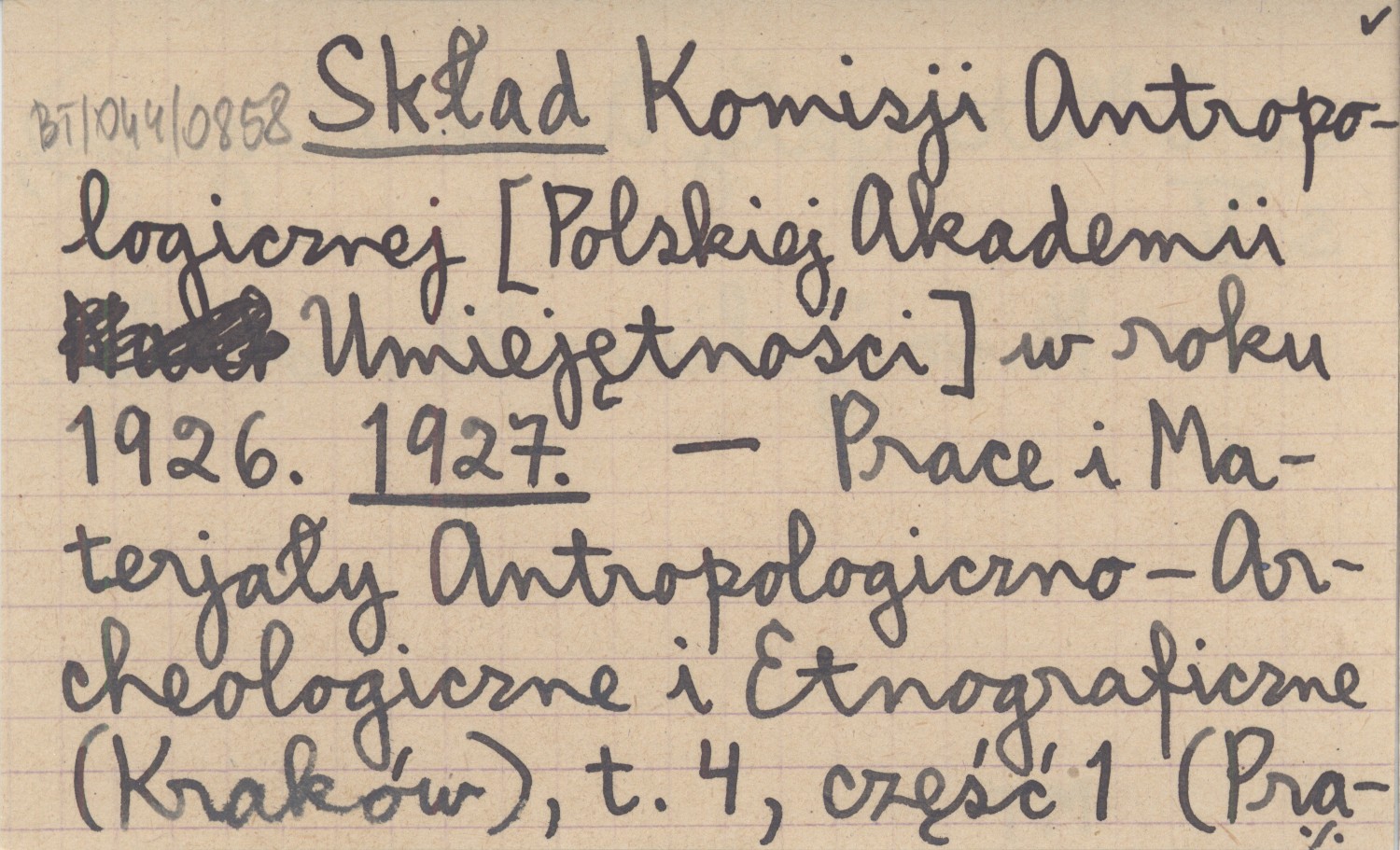 Skład Komisji Antropologicznej [Polskiej Akademii Umiejętności] w roku 1926. 1927