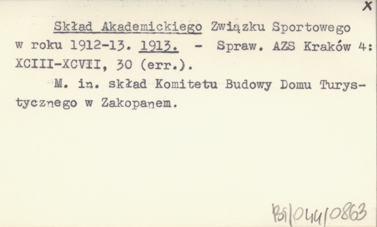 Sprawozdanie Akademickiego Związku Sportowego (Kraków) , 4: XCIII-XCVII, 30 (err.). M. in. skład Komitetu Budowy Domu Turystycznego w Zakopanem.