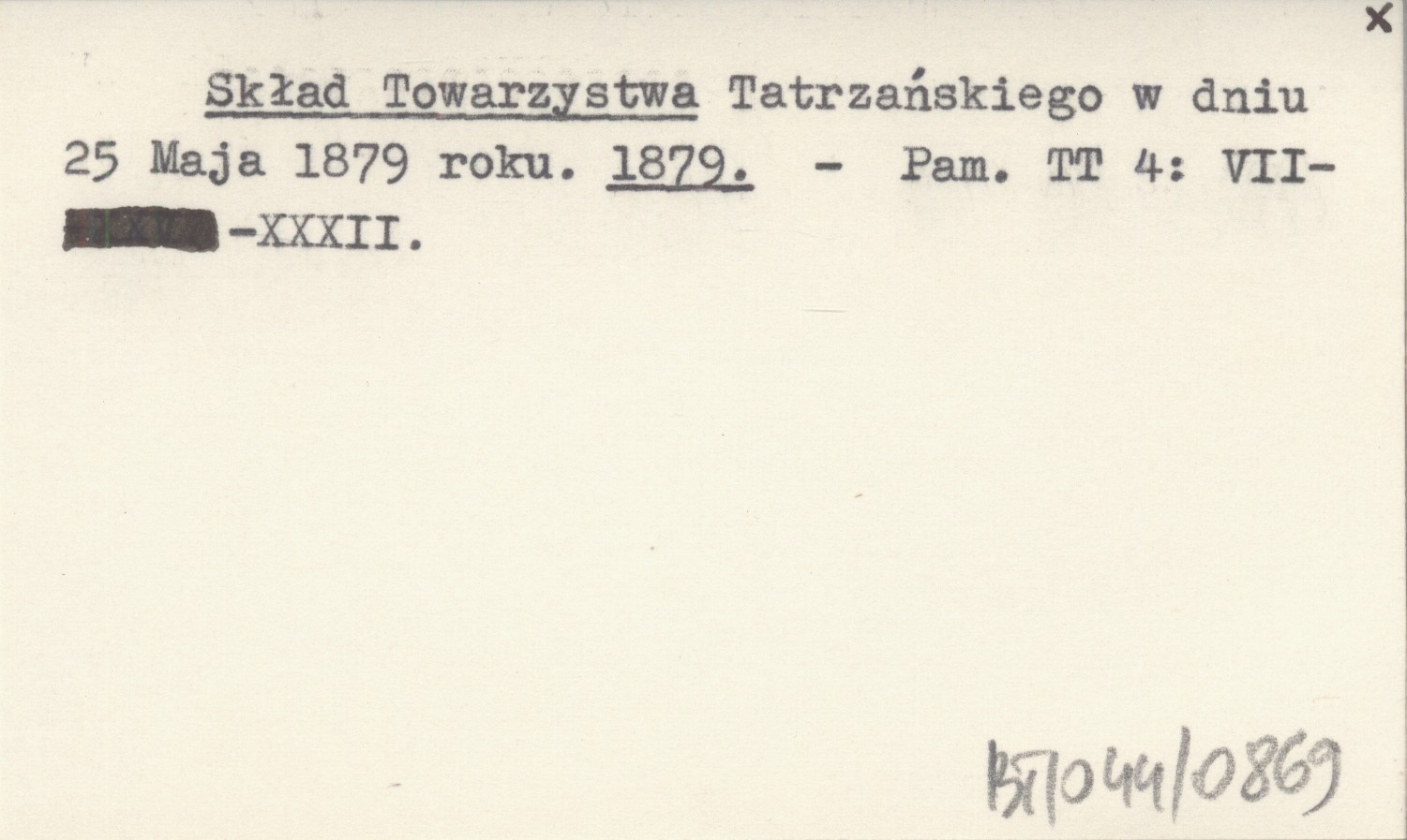 Skład Towarzystwa Tatrzańskiego w dniu 25 Maja 1879 roku. 1879