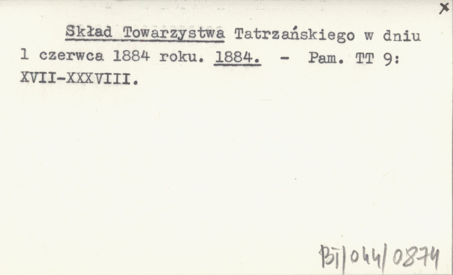 Skład Towarzystwa Tatrzańskiego w dniu 1 czerwca 1884 roku. 1884