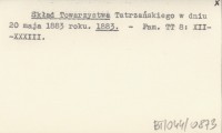 Skład Towarzystwa Tatrzańskiego w dniu 20 maja 1883 roku. 1883
