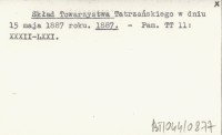 Skład Towarzystwa Tatrzańskiego w dniu 15 maja 1887 roku. 1887