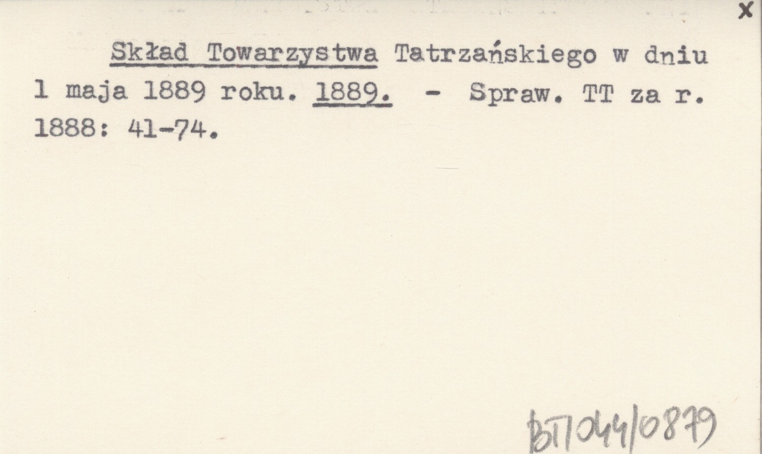 Skład Towarzystwa Tatrzańskiego w dniu 1 maja 1889 roku. 1889